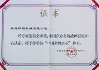 中国印刷机械企业10强证书